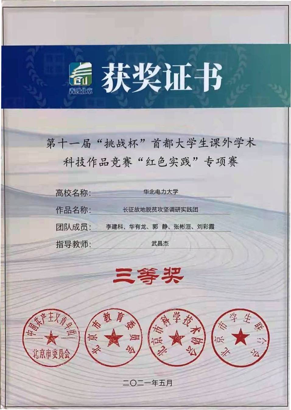 2.7“挑战杯”首都大学生课外学术科技作品竞赛“红色实践”专项赛三等奖