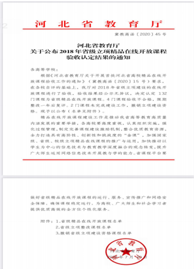 1.4课程评为省级精品在线开放课程并入选“学习强国”