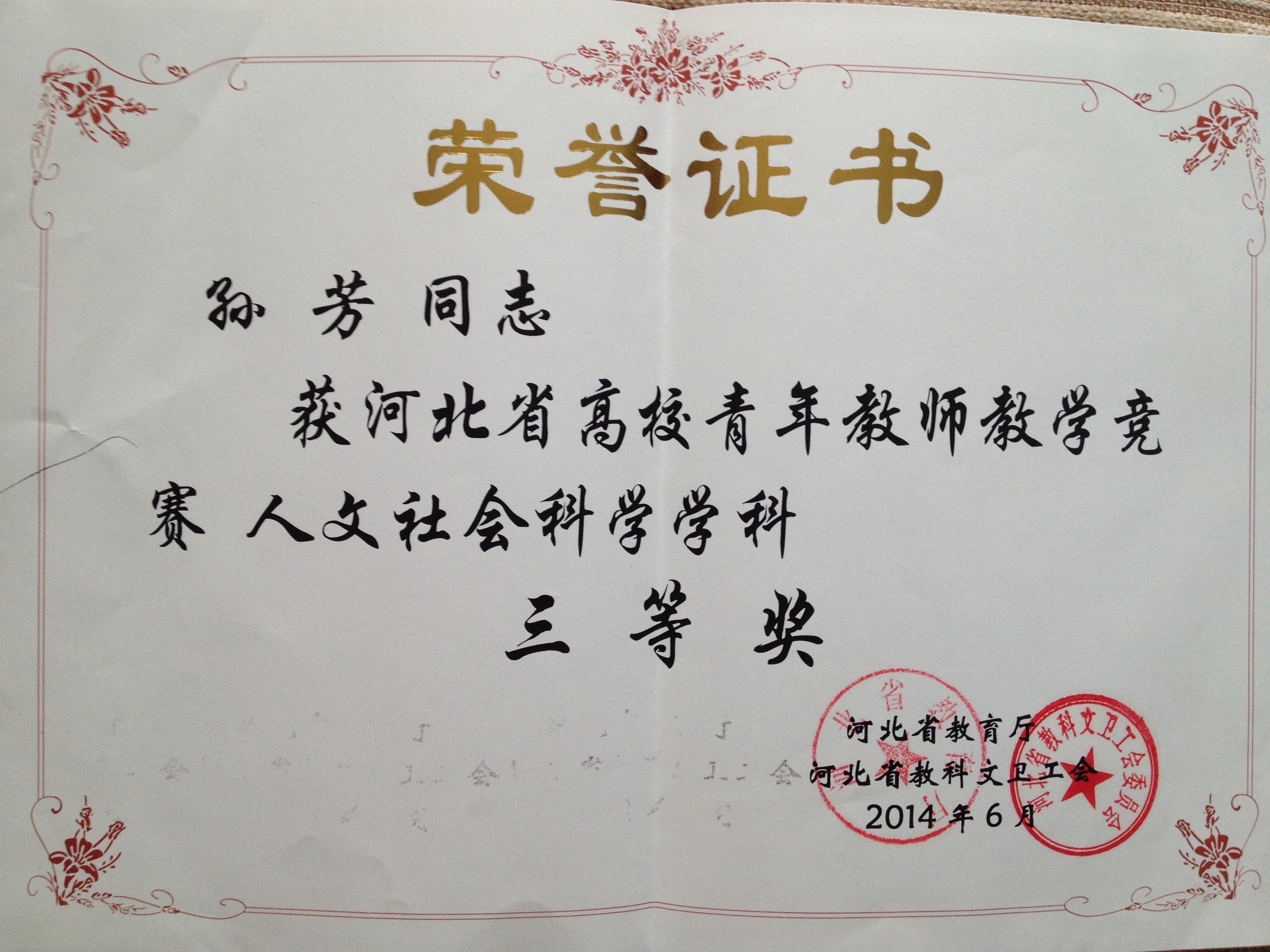 2.5河北省高校青年教师教学竞赛(文科组)三等奖