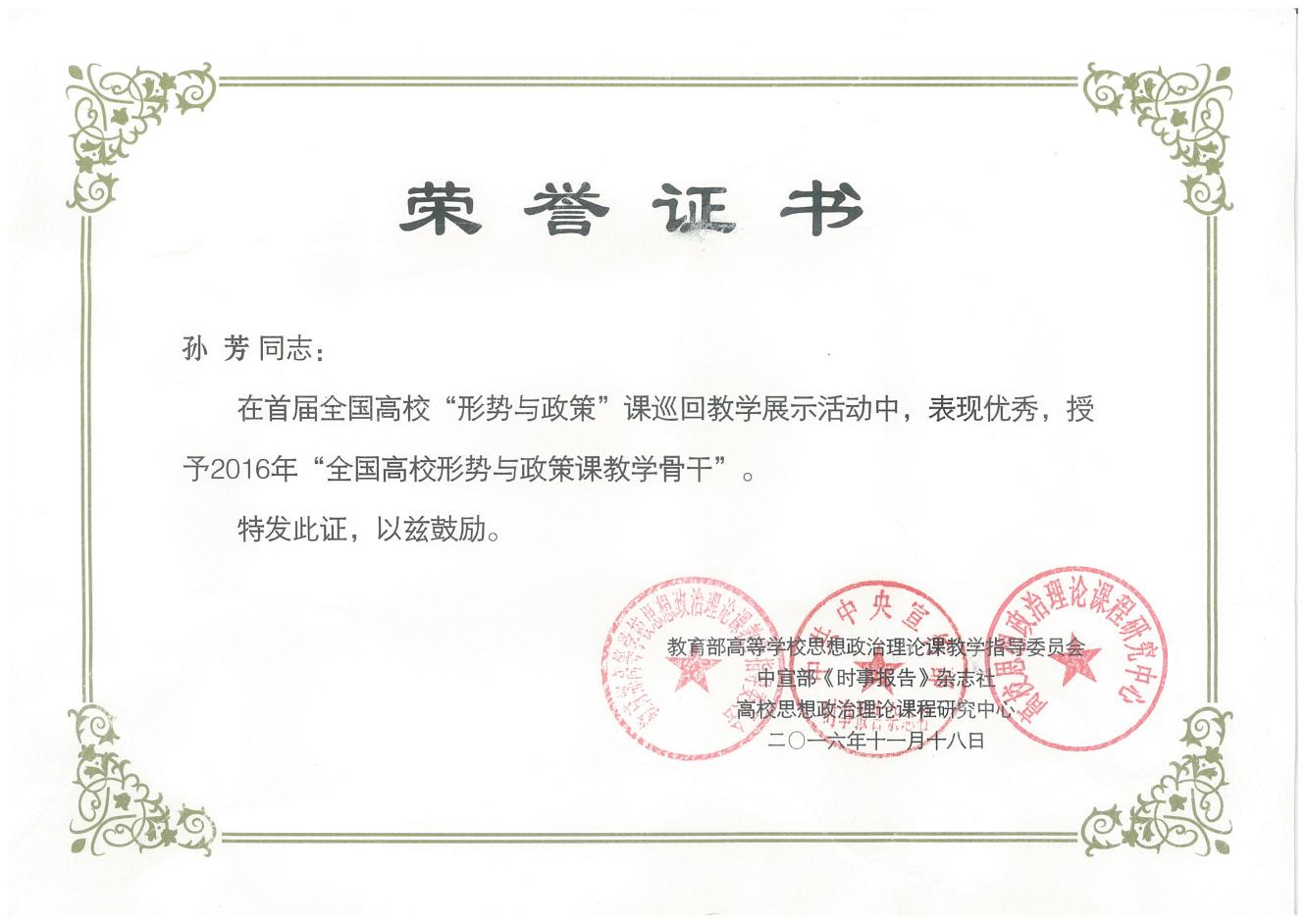 3.4全国高校“形势与政策”课教学骨干奖