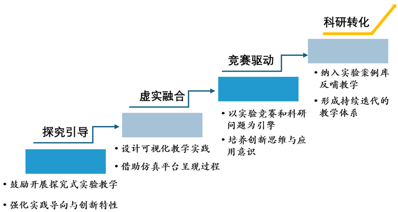 (2)构建“虚实融合、探究引导、竞赛驱动与科研转化”的实践教学模式,解决青年教师实践教学薄弱与应用转化不足的问题,助力复合型人才培养。
